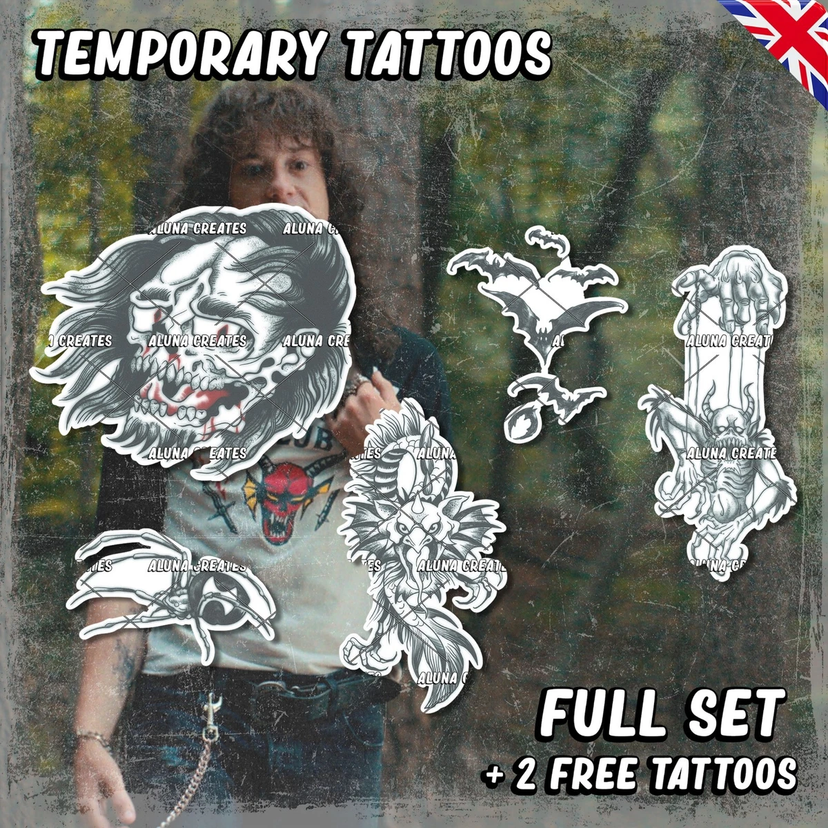 Eddie Munson Full Set Temporary Tattoos By Cosplay Tats St4 Etsy